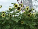 葛西臨海公園の大観覧車付近に多数のヒマワリ(向日葵;キク科ヒマワリ属)が咲き並ぶ |
